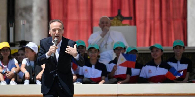 A gyermekek világnapja zárásaként május 26-án, vasárnap Rómában a Szent Péter téren Roberto Benigni Oscar-díjas olasz színész és rendező Ferenc pápa jelenlétében arról beszélt, hogy tegyék jobbá a világot: „A sárkányokat le lehet győzni. Vegyétek kezetekbe az életeteket és tegyétek mesterművé! Építsetek egy jobb világot! Nekünk nem sikerült.”