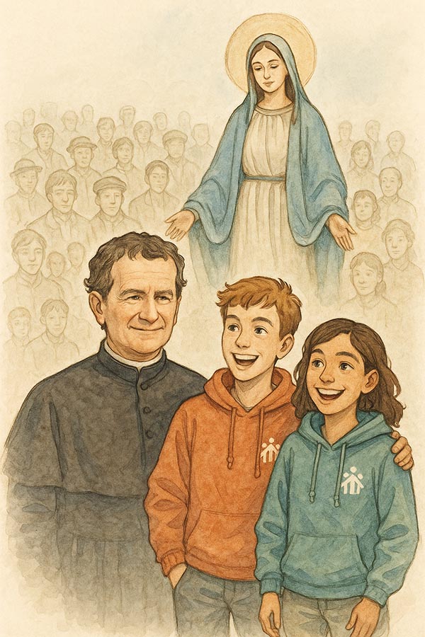 A kezdet egyszerűsége mögött ott állt Mária, a Szeplőtelen Szűz, akire Don Bosco egész életében támaszkodott. Lelkiségünk gyökeréhez tartozik, hogy nem a szervezésből, nem a pedagógiai programból nőtt ki a szalézi lelkiség, hanem egy jelenlétből. Mária jelen volt Don Bosco számára, ő pedig jelenlétével Isten szeretetét vitte a fiatalok közé.