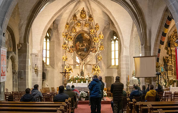 Ebédig még volt egy másik programunk, a Gyöngyöspatai Kisboldogasszony templom látogatása. Igazi gyöngyszem ez az épület, nem véletlenül jegyzik Mátra legszebb templomának. A vendéglátónk kalauzolásával egy igazi időutazásban vehetünk részt. Csodálatos templombelső és egy egyedülálló oltárépítmény fogadott minket, melyen Jézus családfája látható.