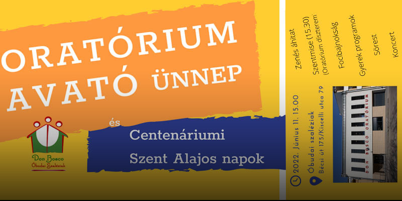 Az óbudai szaléziak június 11-én délután tartják az új oratóriumi épület avató ünnepségét. Ez egyben a szalézi közösség ünnepes is, vagyis a hagyományos "Szent Alajos-napi muskátlivirágos sörest", valamint a pandémia és az épület hiánya miatt méltánytalanul elfeledett 100 éves óbudai szalézi jelenlét ünnepe is.