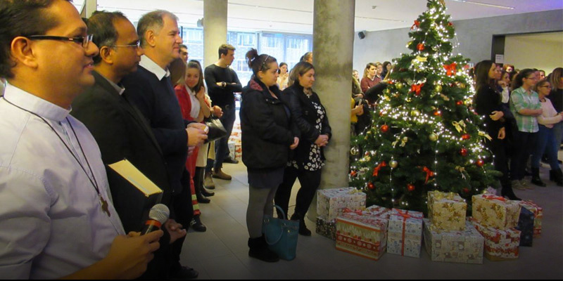 Claudius atya megosztott a fiatalokkal egy személyes történetet, amelyet mindenki érdeklődve hallgatott, Emmanuel testvér énekelt a kórus kíséretében, Somogyi Zsuzsa igazgató asszony pedig átadta az óbudai szalézi közösség igazgatójának, Sabu atyának a 77 doboz, tartós élelmiszereket tartalmazó adományt. A csomagokat az óbudai és újpesti rászoruló családoknak szánják.